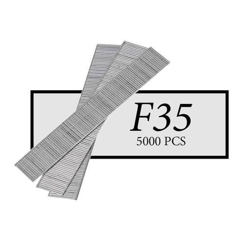 Pino F35 Caixa Com 5000 Grampos Ideal para a fixação de forros, rodapés, montagem de cadeiras, gavetas, filetes de portas, molduras, calçados, esquadrias, balcões, montagem de casinhas de madeiras, finalização de móveis, chapas de compensado, MDF e pranchas em geral. Caixa com 5000 unidades Modelo: f Tamanho: 35mm Material: galvanizado Marca: Trava Forte Marca: Trava Forte