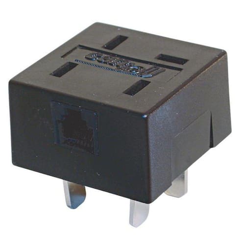 Permite a ligação de um aparelho de telefone, através da entrada de uma Tomada Padrão, disponibilizando 1 entrada do sistema modular na superfície. É utilizado em aparelhos telefônico com ou sem fio, fax, modem, secretaria eletrônica e similares. disponíveis: pino: Latão ou Alumínio Guia: Latão, alumínio ou plástico