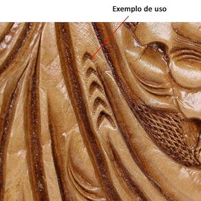 Pino para bordar couro Bronc-Steel, fabricado artesanalmente em aço extremamente resistente, esculpido manualmente em alto relevo com design aperfeiçoado e banho cromo de alta fixação, ideal para couros (solas) com espessura acima de 5mm. O cabo é recartilhado em alto relevo o que garante maior aderência e o seu tamanho permite melhor manuseio evitando pancadas na mão ao bordar. Para garantir a durabilidade e eficiência, recomenda-se o seu uso com Martelo de Tecnil que absorverá melhor o impacto e evitará que a peça seja danificada.
