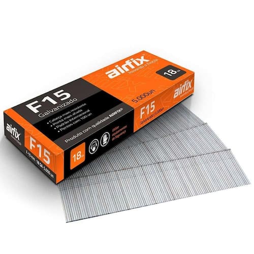 Produto: Pino para pinador pneumático tipo F 1,05 x 15 mm com 5.000 peças - F15 Marca: Airfix Descrição: Pino para pinador pneumático tipo F 1,05 x 15 mm 5.000 peças F15 AirFix Ideal para a fixação de forros, rodapés, montagem de cadeiras, gavetas, filetes de portas, molduras, calçados, esquadrias, balcões, vimes, montagem de casinhas de madeiras, finalização de móveis, etc. Características: • Cabeça mais resistente • Ponta mais afiada • Padrão internacional • Pentes com 100 unidades. especificações: Largura da cabeça: 1,05 mmAltura: 15 mmGalvanizadoPentes com 100 unidadesTotal de unidades: 5.000. Marca: Não Informado Ean: 7898922788402