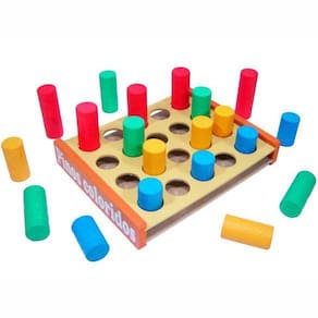 Pinos Coloridos - Planeta Brinquedos Composto por 1 base com 20 pinos coloridos de tamanhos diferentes, tudo fabricado em madeira, pintado com cores vivas e tintas atóxicas. Trabalha a numeração, coordenação viso-motora, cores e tamanhos, quantidade, formas e a memorização. Devido a origem do produto ser artesanal podem ocorrer variações nas cores de acordo com o estoque do produto. Excelente acabamento. Idade: a partir de 3 anos. Certificação Inmetro: CE-BRI/ICEPEX-N 00174-82 NM300/2002.