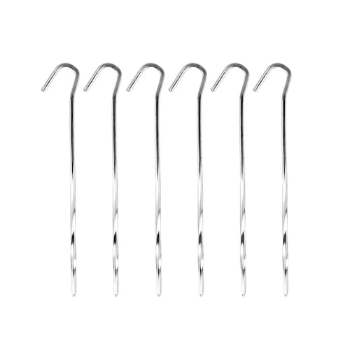 - Pinos de barraca de espeto de aço de 18 cm, incluindo uma haste de aço quadrada torcida que oferece maior poder de retenção.