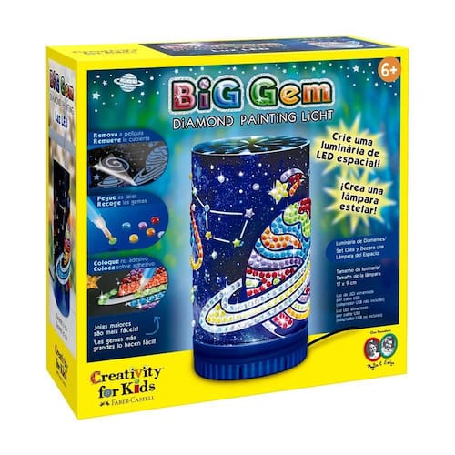 A Pintura com Diamantes Luminária Espacial da linha Creativity for Kids da Faber-Castell é um kit criativo que combina arte e funcionalidade em uma divertida experiência de montagem. Ideal para estimular a coordenação motora, concentração e criatividade, o conjunto permite que crianças decorem uma luminária com pedrinhas brilhantes (diamantes) autocolantes, formando um efeito espacial encantador.