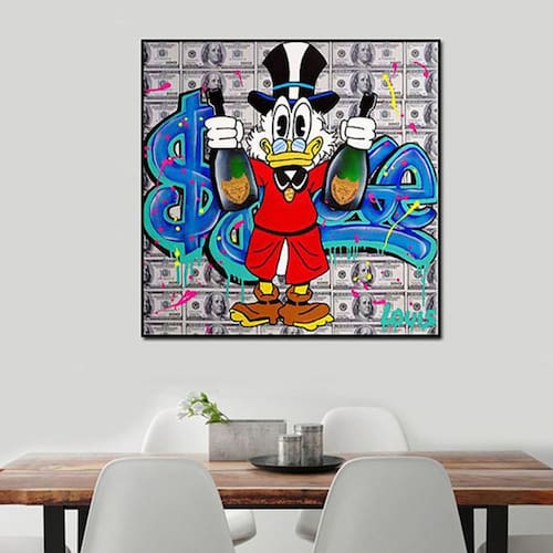 Tamanho: 40x40cm Peso: 200g Material: tecido Embalagem: 1 x pintura em tela sem moldura Esta pintura de arte de parede ilustrada apresenta um personagem clássico de desenho animado magnata do pato com tema de dinheiro e grafite de rua, criando um estilo visual divertido, ousado e energético que adiciona personalidade a qualquer espaço. Impressa em alta definição em material de tecido durável, esta pintura de parede oferece cores vibrantes, linhas nítidas e uma textura suave que mantém a obra de arte fresca e atraente por anos. Perfeita como arte de parede ilustrada para salas de estar, quartos, escritórios, cafés ou quartos infantis, esta pintura traz criatividade lúdica e uma atmosfera moderna de arte de rua à sua decoração de interiores. Com um tamanho prático de 40x40cm e um design leve de apenas 200g, esta pintura de parede é fácil de pendurar, mover e armazenar, tornando-a ideal para uso doméstico ou comercial. Nós nos concentramos na qualidade e no serviço de cada pintura artística e de parede e, se você tiver alguma dúvida, nossa equipe de suporte profissional está pronta para ajudar até que você esteja totalmente satisfeito.