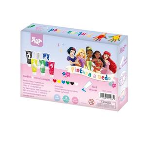 Pintura de dedo princesas com 6 bisnaga cores lavavel Categoria: pintura a dedo Cor: estampado Formato: 21,5 cm x 23 cm x 3,5 cm Quantidade: 6 bisnagas por caixinha vermelha, amarela, azul, verde, preta e branca Composição: água/resina/carga mineral/pig/conservante