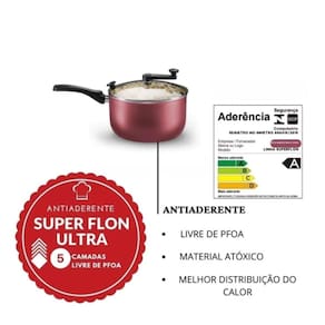 Material: Com tampa de vidro e saída de vapor; Manivela de nylon (não derrete); Misturador em alumínio; Revestimento Superflon 5 camadas.