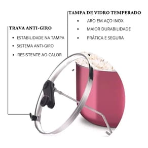 Pipoqueira Linha Premium, com 5 camadas de revestimento antiaderente e tampa de vidro.
