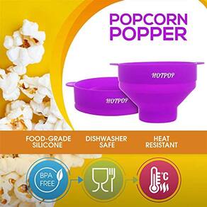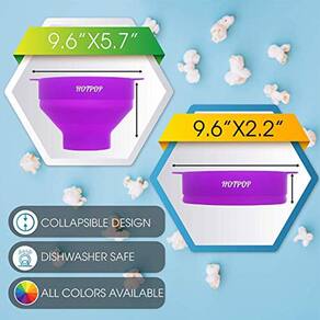 HOTPOP Reimaginado: Abandone os barulhentos poppers de ar quente elétrico, os poppers de topo do fogão lento, e os sacos de pipoca de micro-ondas prejudiciais. Hotpop pipoca popper vai fazer sua pipoca em 2-4 minutos em uma tigela de silicone revolucionária. Você pode torná-lo tão saudável quanto quiser ou canalizar seu chef interior e criar um livro de receitas cheio de imaginação culinária. Popocorn Your Way! Hotpop pipoca popper é perfeito para fazer pipoca a qualquer hora do dia. Compre várias quantidades para barras de pipoca em chás de bebê, formaturas, festas de aniversário e casamentos ou traga o teatro para casa e recue com um filme, seus filhos, e sua própria pipoca personalizada saudável! Confie no HOTPOP! A fabricante de pipoca HOTPOP é feita do silicone de alta qualidade mais seguro e durável ! Pop, Drop, Heat e Eat. Repetir! 1. Coloque o popper de pipoca HOTPOP e retire a tampa. 2. Deixe cair a escolha dos grãos e tempero ou queda de óleo. Abaixe suavemente a tampa de volta para a tigela. 3. Aqueça por 2-4 minutos* dependendo da sua potência de micro-ondas. 4. Coma como um lanche saudável a qualquer hora do dia! Não para uso com fornos de micro-ondas de convecção. Tenha sempre cuidado ao remover a tampa devido ao calor e vapor. *Os tempos de aquecimento variam dependendo do micro-ondas. Para 1000w ou mais, sugerimos baixar para o Nível de Potência 8. O uso do Alto Nível 10 pode levar à pipoca queimada.