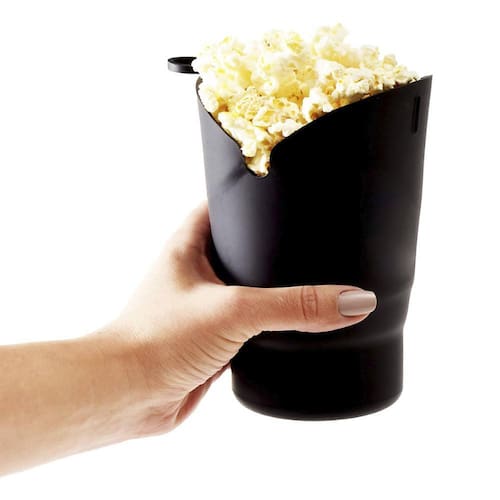 Feche e coloque a pipoqueira no microondas por cerca de 2 a 3 minutos (o tempo varia dependendo da potência de cada microondas), se 2 minutos não for o suficiente para estourar todos o grão, deixe mais um pouco, de 30s a 1 minuto adicionais.