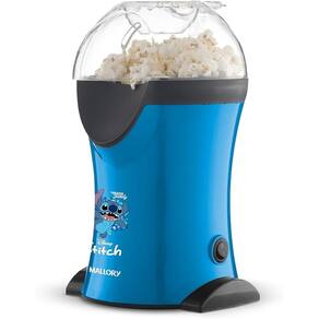 Pipoqueira elétrica Mallory com design do Stitch, prepara pipocas crocantes sem óleo, possui tampa medidora para derreter manteiga ou chocolate, charmosa e compacta.Luz indicadora de funcionamento