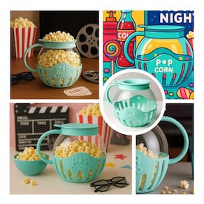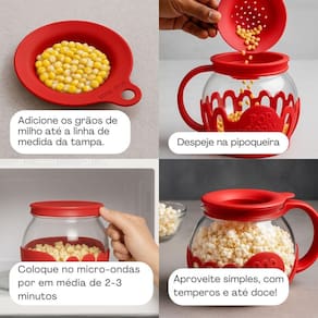 Pipoqueira para micro-ondas, sem óleo, saudável, design moderno e funcional, prepara pipoca em poucos minutos, segura, sem gordura, capacidade de 2,5 litros, fabricada em vidro de borossilicato com tampa de silicone e base de polipropileno PP, livre de BPA, tampa multifuncional para medir milho e derreter manteiga, fácil de usar e limpar, pode ir à lava-louças, reutilizável.Luz indicadora de funcionamento