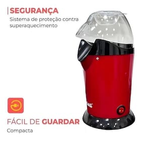 Feita de plástico e metal resistentes, essa pipoqueira elétrica é prática, rápida e fácil de usar. Ideal para quem busca um lanche saboroso e sem culpa, sem precisar de óleo.