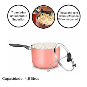 Além disso, a pipoqueira possui um revestimento externo antiaderente na cor rose, que além de proporcionar um visual elegante, facilita na hora de limpar o utensílio. Basta lavar com água e detergente neutro para que ela fique pronta para ser usada novamente.