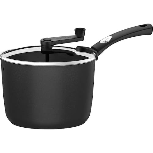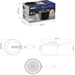Corpo de alumínio com espessura de 3,0 mm que proporciona cozimento rápido e uniforme | Revestimento interno e externo de antiaderente Starflon Premium que não gruda, é fácil de limpar, mais durável e não é prejudicial a saúde | Tampa de alumínio com trava antigiro: não gira durante o preparo | Alças metálicas com proteção de silicone, oferecendo maior segurança durante o manuseio | Manípulo de nylon | Saída de vapor que evita que as pipocas fiquem umedecidas, mantendo-as crocantes e deliciosas.Luz indicadora de funcionamento