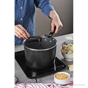 A Pipoqueira Tramontina Mônaco Induction 22 cm com Revestimento Antiaderente 5,4 Litros Preta com diâmetro de 22 centímetros é a escolha perfeita para preparar suas pipocas crocantes de maneira prática e segura.