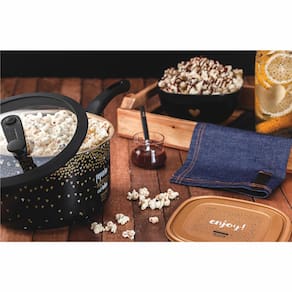 Uma panela perfeita para preparar pipocas doces ou salgadas e servir de uma maneira inovadora. Garanta já a sua!