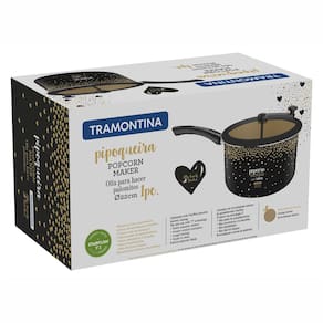 A Pipoqueira Tramontina My Lovely Kitchen é um produto charmoso e sofisticado que não pode faltar na sua cozinha. Possui acabamento externo com revestimento de poliéster na coloração preta e estampa de corações dourados e brancos, que agrega mais beleza e glamour a peça.