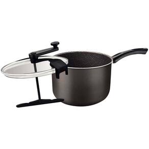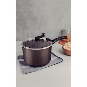 Para preparar aquela pipoca crocante para seu lanche da tarde, a pipoqueira Tramontina Paris em alumínio com revestimento interno e externo em antiaderente Starflon Max chumbo 22 centímetros de diâmetro 4,8 litros é a escolha ideal. Produzida com corpo em alumínio com antiaderente Starflon Max, ela garante que o milho estoure de maneira rápida e uniforme, sem que grudem em sua superfície. A pipoqueira vem com tampa de vidro temperado com borda de silicone e não gira durante o preparo. O seu cabo é em baquelite e seu manípulo e trava são de nylon, ambos materiais antitérmicos, que oferecem maior e conforto durante o manuseio. Além dessas características, a pipoqueira pode ir à máquina de lavar louças e vai otimizar sua tarefas na cozinha!