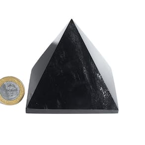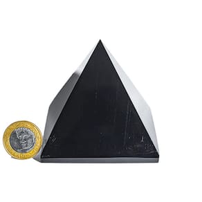 Enigma ancestral esculpido: Pirâmide Obsidiana Negra, pedra natural, evoca a grandiosidade e o mistério da Base Quéops.