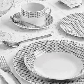 O Pires Luana da Hauskraft vai trazer à sua mesa mais charme e sofisticação nos momentos de suas refeições. Suas peças são confeccionadas em porcelana e trabalhadas no formato redondo o que as torna ainda mais especiais, por serem peças de altíssima qualidade e durabilidade. Esta peça de porcelana tem de tudo para melhorar suas reuniões, comemorações e cerimônias. A peça conta com desenhos geométricos em tons de cinza em suas bordas para agregar na decoração de sua mesa posta!