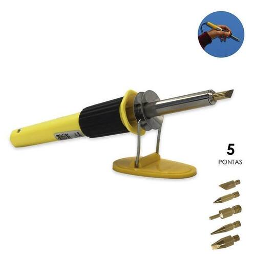 Conta com 5 tipos de pontas para usar de diversas formas, e graças ao seu design, ele é versátil, prático e fácil de usar, permitindo utiliza-lo com mais precisão. ===================================== Contém: 01 Pirógrafo / Ferro de Solda 05 Pontas