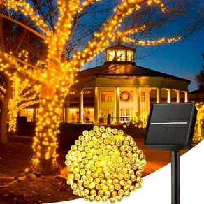 1 Cordão De Pisca Solar 300 LEDs Amarelo De 30 Metros;