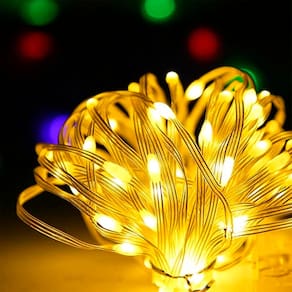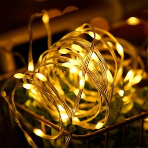 Baixo consumo de energia, Alta durabilidade, brilho intenso, Fio branco resistente e flexível para instalação interna ou externa