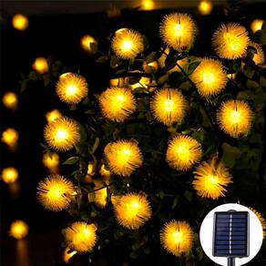 Pisca Cordão Solar Natal 20 Dente De Leão LEDs Amarelo De 5m -