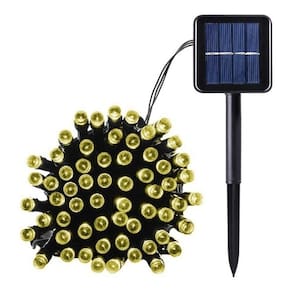 Pisca Cordão Solar Natal LED 100 Lâmpadas Luz Amarela 10m -