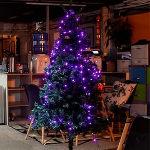Com 200 lâmpadas LED em tom Roxo, este cordão de 17 metros é perfeito para deixar qualquer ambiente mais bonito e festivo
