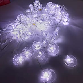 Cortina de Leds Luas e estrelas decorativa. Linda e ideal para: interior e exterior de ambiente e para decoração de eventos como natal, halloween, casamentos, festas e etc