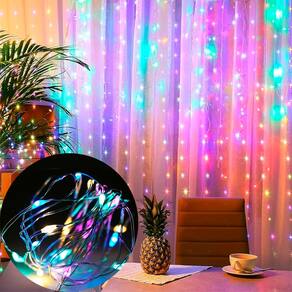 1 Pisca Cortina de Luzes LEDs Colorido de 3x3 Metros 110 - 220v;