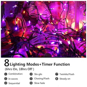 Luzes de Halloween com Bateria: As luzes laranja roxas são alimentadas por 4 pilhas AA não incluídas. Você pode pressionar o botão na caixa da bateria para ligar, desligar as luzes laranja e escolher entre 8 modos diferentes para atender às suas diversas necessidades.