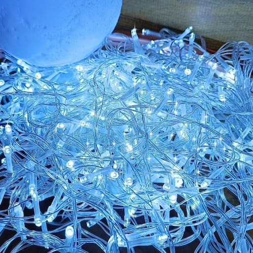 100 LEDs Branco Frio 8 Funções Fio Transparente 10m