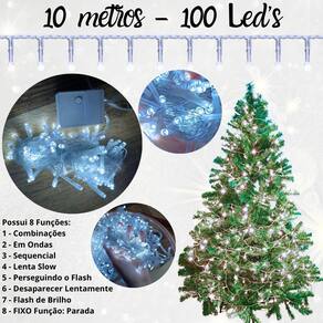 Crie um ambiente mágico e acolhedor com este pisca-pisca de 100 LEDs branco frio. Com 8 funções de iluminação e 10 metros de comprimento, é perfeito para decorar sua casa, árvore de Natal ou festas. O fio transparente garante uma aparência discreta, destacando apenas o brilho encantador das luzes.
