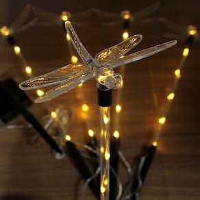 Pisca Solar Decoração Libélula LED Amarelo Natal Jardim 2,5m -