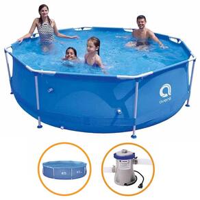 Características: - Marca: Jilong. - Capacidade: 4.383 (90% de sua capacidade máxima). - Material: Piscina em lona PVC de alta resistência e durabilidade. - Dimensões: 3 Metros de diâmetro e 76 CM de altura. - Peso aproximado: 16 Quilos. - Cor: Azul. - Acompanha bomba filtrante e capa estrutural. - Piscina com válvula de escoamento. - Acompanha Adesivo de reparo e manual de instruções. 90 dias de garantia a partir do recebimento do produto mediante apresentação de danos causados no processo de fabricação.