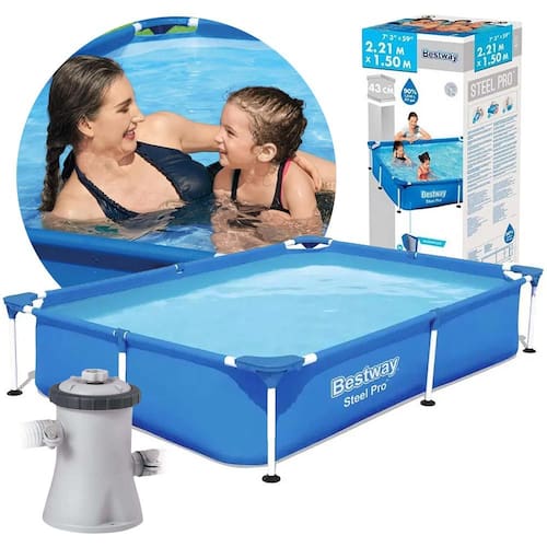 Não há nada como desfrutar de uma piscina no seu próprio jardim! A piscina desmontável Bestway® Steel Pro? é uma opção ultra durável a um preço excelente. Construção durável: A estrutura de aço resistente à corrosão é forte e durável, para que a sua família possa desfrutar durante todo o Verão. O revestimento DuraPlus? é feito de um material durável e reforçado para maior solidez e resistência aos furos. É muito fácil instalar e desmontar esta piscina para armazenar quando não está a ser utilizada. Não são necessárias ferramentas e basta ligar uma mangueira à válvula de controlo de fluxo incorporada para esvaziar a piscina rápida e facilmente.