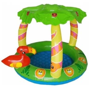 A colorida e estampada Banheira Tropical traz um lindo para-sol em formato de coqueiro que vai proteger os pequenos dos raios nocivos do sol, além de contar com um brinquedo inflável o flamingo. Perfeita para refrescar nos dias de calor, a banheira foi confeccionada em vinil resistente com estampa em tinta atóxica e possui fundo inflável para maior conforto dos pequenos.