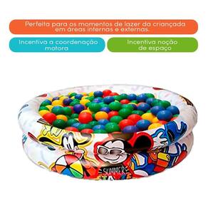 Diversão Garantida: A estampa do Mickey Mouse encanta as crianças e torna o momento de brincar ainda mais mágico. As 50 bolinhas coloridas incluídas garantem horas de diversão.