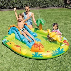 Intex Little Dino Dinossauro TemáticoPiscina Inflável quintal Play Center com pulverizador de palmeira, mini tobogã e dinossauro inflável.Dimensão: 191x152x58cmMarca: Intex