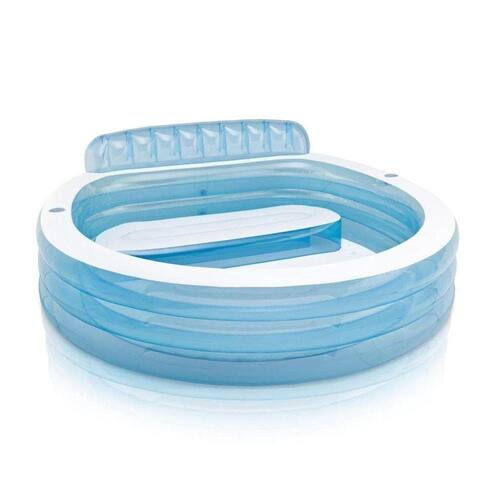 Piscina Familiar Inflável Lounge Com Assento 590 Litros Intex A piscina inflável Intex Lounge tem um desenho prático para que os pais possam estar na piscina e tomar banho enquanto tomam conta dos mais novos. Conta com um sofá inflável com encosto incluso e dois porta-copos, tem capacidade para 590 litros de água ao encher até à altura recomendada (30 cm). O desenho da piscina conta com três aros infláveis e duas cores: azul claro transparente e branco opaco. Material em vinil extremamente resistente com uma espessura de 0,32 mm.Além disso, a piscina conta com 2 câmaras de ar , ambas com válvula dupla para um enchimento e esvaziamento mais rápido e prático. É o momento de adquirir esta piscina insuflável familiar da Intex e dar um novo toque ao seu jardim.