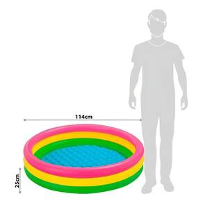 Agora as crianças poderão curtir um dia de sol e se refrescar com a Piscina Pôr do Sol - 3 Anéis da Intex Com uma capacidade de 131 litros, esta piscina infantil é ideal para os pequenos se divertirem em dias quentes. Confeccionada em vinil resistente pré-testado, garante durabilidade e segurança durante o uso. O fundo inflável proporciona um maior conforto, permitindo que as crianças brinquem com total tranquilidade. Com dimensões de 1,14m de diâmetro e 25cm de altura, é perfeita para crianças de 2 a 4 anos. Além disso, a piscina vem com um kit de reparo, assegurando que a diversão nunca acabe. Marca: Não Informado Ean: 79000738049715