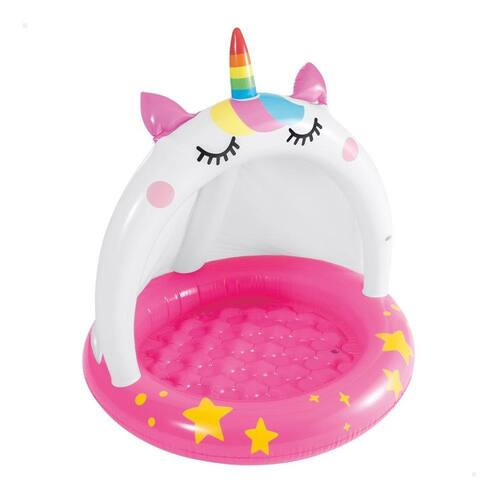 Esta pequena piscina Inflável em forma de unicórnio, além de atrair as crianças pelo seu design alegre e divertido, é perfeita para se refrescar protegida do sol graças ao seu guarda-sol. É feito de vinil forte e durável , seu anel de fundo inflável oferece estabilidade e o piso acolchoado ajuda a amortecer quedas e reduz o risco de lesões caso as crianças escorreguem ou tropecem na piscina.