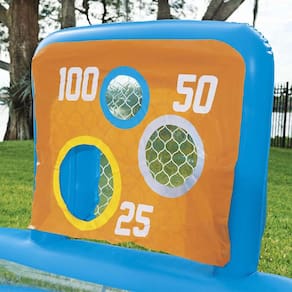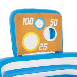 Desenvolvida para manter as crianças e os adultos em movimento, em diversão e fora de casa, a piscina bola no alvo da bestway coloca a diversão em primeiro lugar Esta piscina divertida e inovadora é perfeita para a diversão aquática no verão e oferece um jogo divertido para as crianças jogarem. Com 2 alvos nas paredes da piscina, as crianças podem usar as 5 bolas de brincar incluídas e ver quem obtém a pontuação mais alta baseada no quadro de pontuação. A piscina tem paredes laterais extra largas para uma maior durabilidade. Quando terminar a diversão no final do verão, pode esvaziar a água da piscina facilmente com a ajuda da válvula de drenagem de fácil utilização.