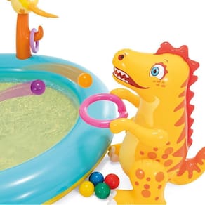 A Piscina Playcenter Dinolandia além de ser confeccionada com materiais de alta qualidade, conta com diversas opções de atividades para as crianças, tais como, piscina, escorregador, jogo de bolinhas(6 bolinhas de plástico inclusas). Além disso, possui um Dinossauro artificial que esguicha água além de uma superfície super confortável. Diversão garantida!