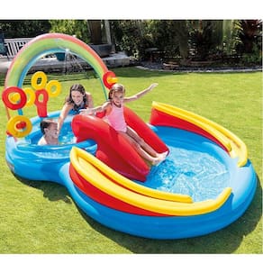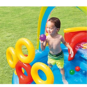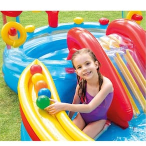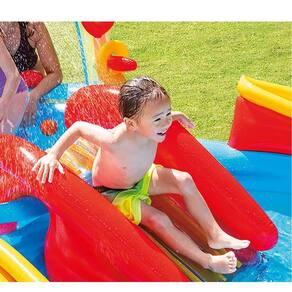 Faça com que a diversão dos mais novos se multiplique com este centro de jogos aquático inflável. A Piscina Inflável Infantil Intex Centro Divertido Playground é um centro de jogo de água dividido em duas piscinas e que inclui diferentes acessórios para poder brincar com eles enquanto os pequenos dão um mergulho refrescante. Dimenões do produto: Comprimento: 297cm Largura: 193cm Altura: 135cm Características do produto : Duas Piscinas em um produto, uma com 175 litros e outra com 206 litros Conta com um escorrega com base acolchoada para amortecer a queda e aros infláveis encaixáveis O aro superior possui um spray de água com conexão e adaptador a uma mangueira de jardim Com 6 bolas de Polietileno e 4 aros infláveis para encaixar Possui tampão de escoamento para facilitar ao encher e esvaziar