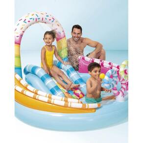 Adoce o seu verão com esta pequena piscina insuflável com escorrega da INTEX!
