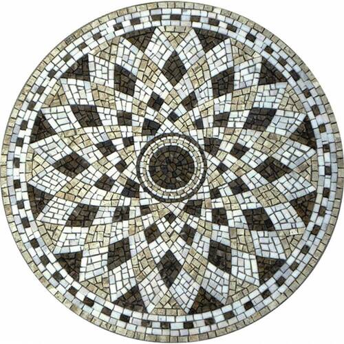 Especificações técnicas do mosaico: Feito com pedras - Mármores e granitos de todo o Brasil e importados da Europa e Ásia - para obter todas as cores desejadas em pedras naturais; Vem todo montado sobre tela, só colocar conforme manual de colocação, Resistência e Durabilidade em área interna e externa; Espessura de 10 mm Mesma espessura do porcelanato ou piso cerâmico Liso e agradável para uso diário; Mosaico feito integralmente à mão com técnica do mosaico romano;
