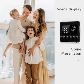 1. botão de toque:. Este é um controlador de temperatura de botão de toque 2. Display LCD: LCD ultrafino e grande, fácil de operar e ler mesmo no escuro 3.. o modo de controlo da temperatura:. 6 modos de controle de temperatura podem garantir temperatura confortável, mais opções e maior flexibilidade 4. Sem fio:. Wi-Fi e controle de voz, conveniente para controlar o termostato a partir do seu dispositivo móvel 5. Desligue a memória:. Sem necessidade de reiniciar, sem medo de desligamento de perigo, memória precisa das configurações anteriores